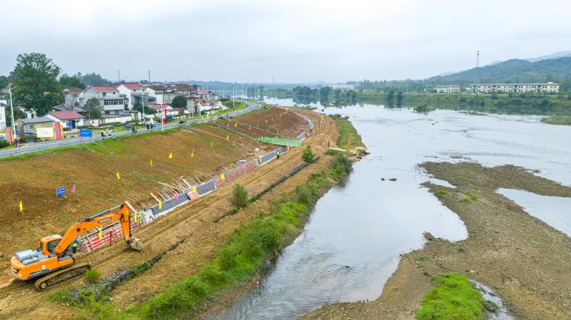 9月19日,在裕安区独山镇,淠河防洪治理工程施工现场一片繁忙。施工人员正有序进行护坡作业,为河道筑牢安全屏障。